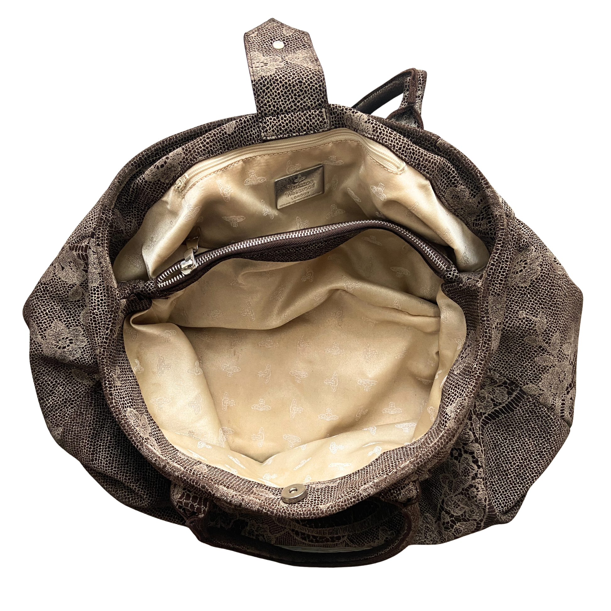 Vivienne Westwood Large Sized Brown Lace Pattern Orb Bag